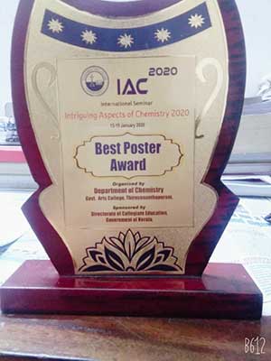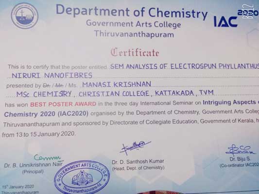 2. Best Poster Award- Ms. Manasi Krishnan-II MSc Chemistry